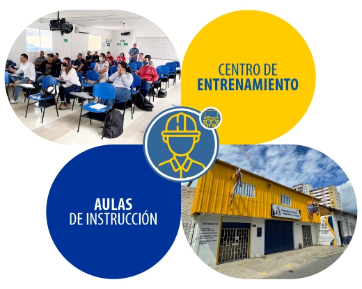 Contamos con un moderno, amplio y completo centro de entrenamiento para las actividades de formación en trabajo seguro en alturas, en cumplimiento por lo establecido mediante Resolución 1178 de 2017, certificado por ICONTEC ISO 9001:2015 CO-SC-CER579243 y bajo Norma Técnica Colombiana NTC 6072:2014 y autorizados por el Ministerio de Trabajo para el sector construcción, telecomunicaciones, eléctrico e hidrocarburos con numero de aprobación 08SE2020220000000010694 10/03/2020.